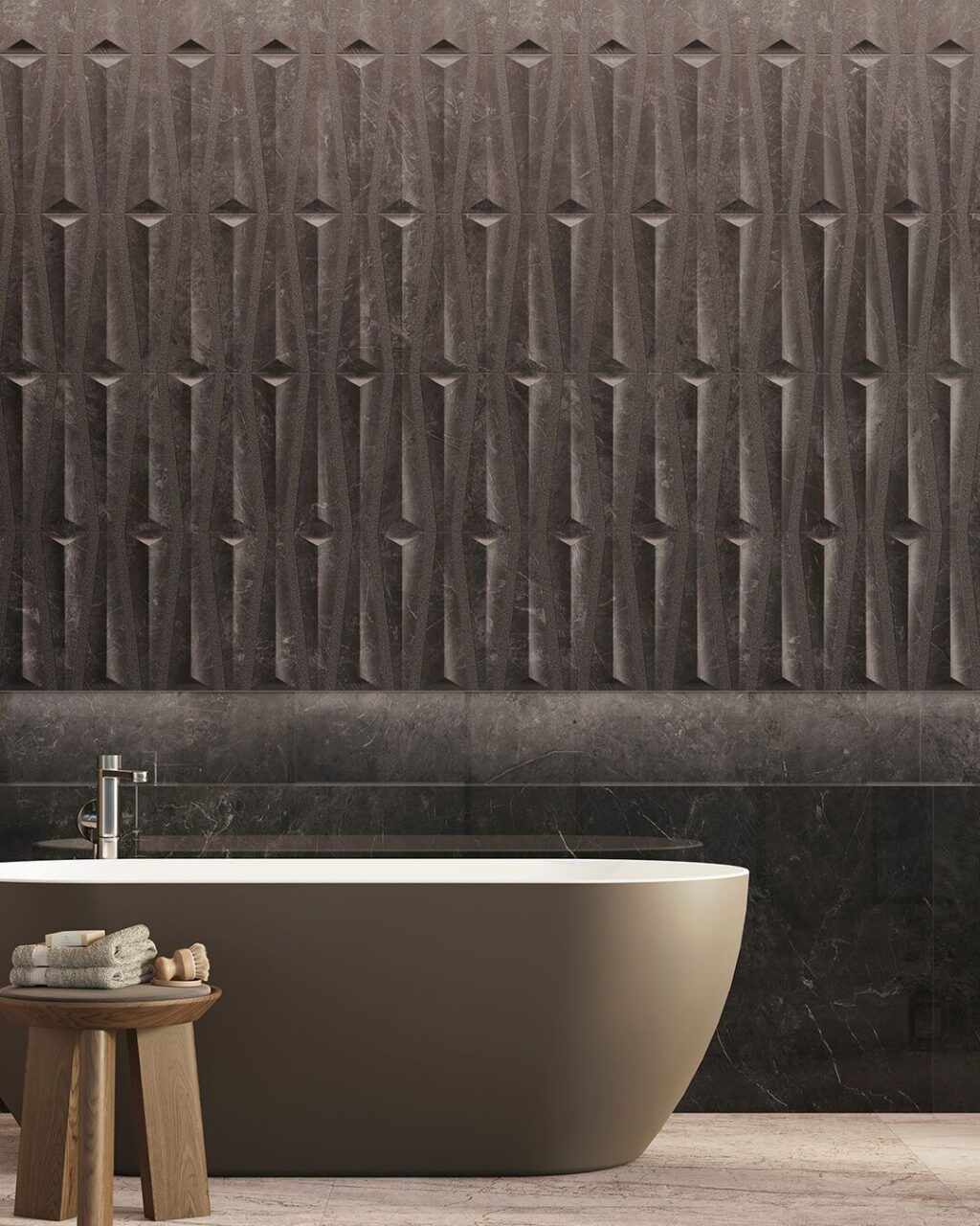 Se ben progettato, un bagno scuro non risulterà mai cupo, bensì elegante e armonioso. Per  ottenere questo effetto è fondamentale lavorare su tre aspetti: rivestimenti, illuminazione e accessori. Partendo dai rivestimenti, secondo Porcelanosa la scelta di piastrelle nere per il bagno è vincente, soprattutto in grandi formati come quelli dei modelli Marquina o Nylo, eventualmente con finiture tridimensionali come quelle di Velluto Deco, impeccabili nel creare un fondale sofisticato.