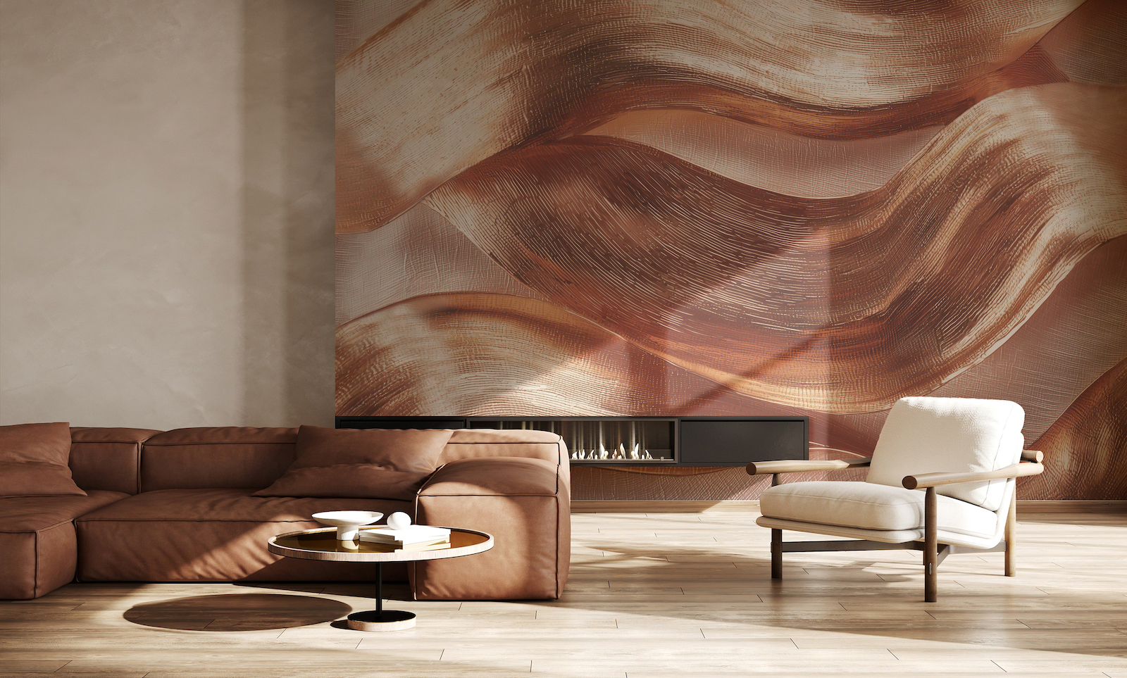In un ambiente ispirato ai colori dell’autunno, non sono soltanto gli arredi a definire la palette cromatica: anche una parete, scelta con cura, può diventare la vera protagonista dello spazio. Come un fondale scenico, accoglie e riflette la luce, trasformandosi in un elemento decorativo capace di raccontare un’emozione e dare carattere all’ambiente.