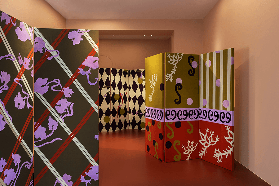 Alla kermesse parigina Mahdavi ha presentato diverse collaborazioni, tra cui una poetica collezione di paraventi realizzati con The Crafties: un trio di folding screen interamente fatti a mano nell’atelier di Sète. Nati come prima incursione del marchio nel mondo dei tessili, questi paraventi creano un valzer ornamentale di trame, motivi e pattern, sovrapposti e intrecciati.