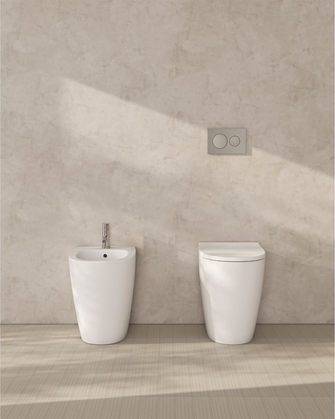 Parallelamente, la serie 4All amplia la propria gamma con una nuova versione a terra da 55×37 cm ad altezza maggiorata di 48 cm. Interpretando il tema dell’accessibilità in chiave attuale, questi sanitari rispondono alle esigenze di una platea vasta che include persone anziane, utenti con difficoltà motorie e persone di alta statura che spesso trovano i 42 cm standard limitanti. L’altezza di 48 cm facilita il movimento di seduta e di risalita aumentando l’autonomia quotidiana senza che l’occhio percepisca la differenza con i modelli standard. Il tutto mantenendo un’estetica elegante e minimale, adatta agli spazi domestici quanto a strutture ricettive e spazi pubblici dove inclusività e affidabilità diventano elementi centrali del progetto.