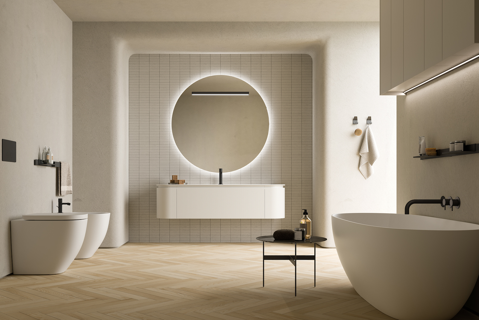 Lo spazio privato evolve in un’oasi di benessere a 360 gradi. Le novità dedicate all’ambiente bagno esplorano materiali durevoli ed eleganti, unendo la ricerca tecnologica a un’estetica votata al relax assoluto. Il concetto di “Cura” diventa il filo conduttore di soluzioni che trasformano la stanza da bagno in un rifugio rigenerante.