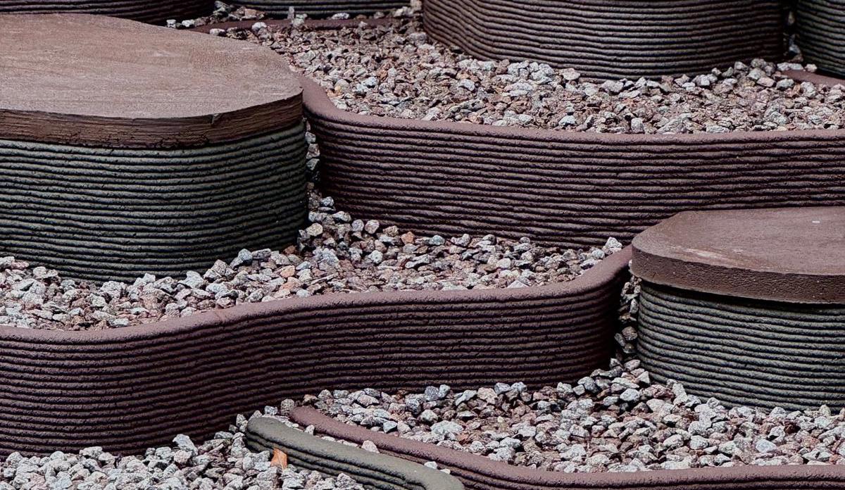 Discrete Landscape è realizzata con 415 blocchi stampati in 3D, suddivisi in 58 tipologie modulari che richiamano colonne basaltiche. Le forme irregolari dei blocchi, talvolta cave, talvolta piene, permettono di creare sedute naturali o tasche di terra per piccole essenze arboree autoctone. Grazie alla loro varietà tipologica, i blocchi si auto-incastrano generando una struttura autoportante senza l’uso di malte o leganti, in continuità con la tradizione della costruzione a secco reinterpretata in chiave contemporanea tramite strumenti digitali avanzati.